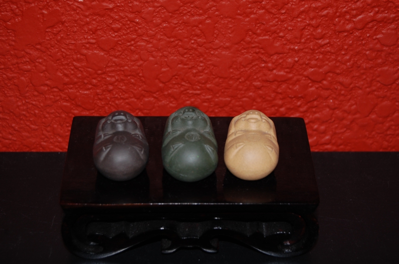 七福神のひとり、布袋様。この笑顔が幸福や人を招くと考えられ、お顔を外に向けて飾るとより効果があるといわれています。横9㎝/奥行き5㎝/高さ7㎝