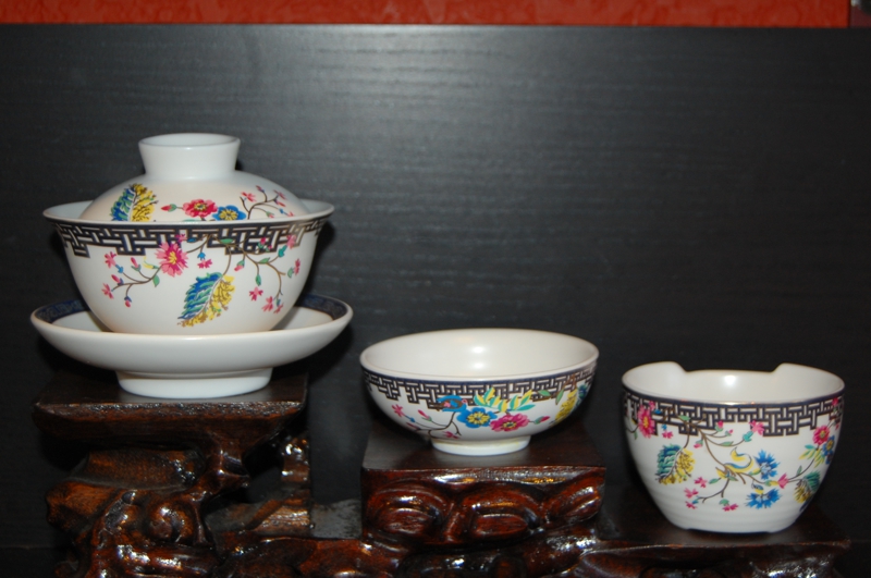 蓋碗から直接お茶を飲めば優雅な一人茶、茶葉を選ばない磁器製の茶器は中国茶入門者にもぴったりです。
