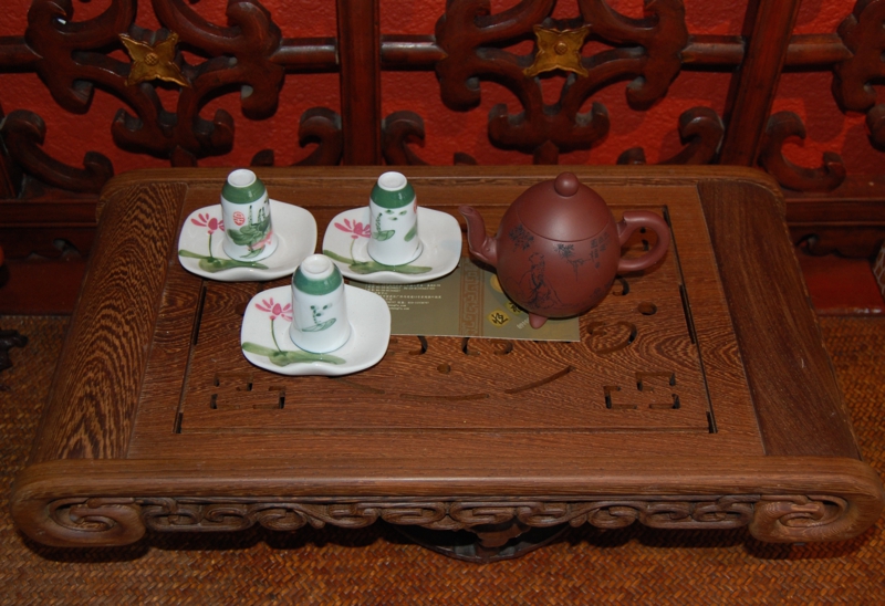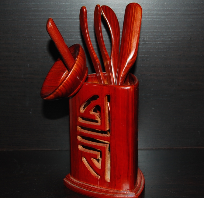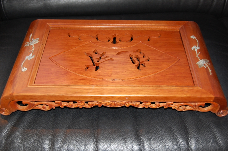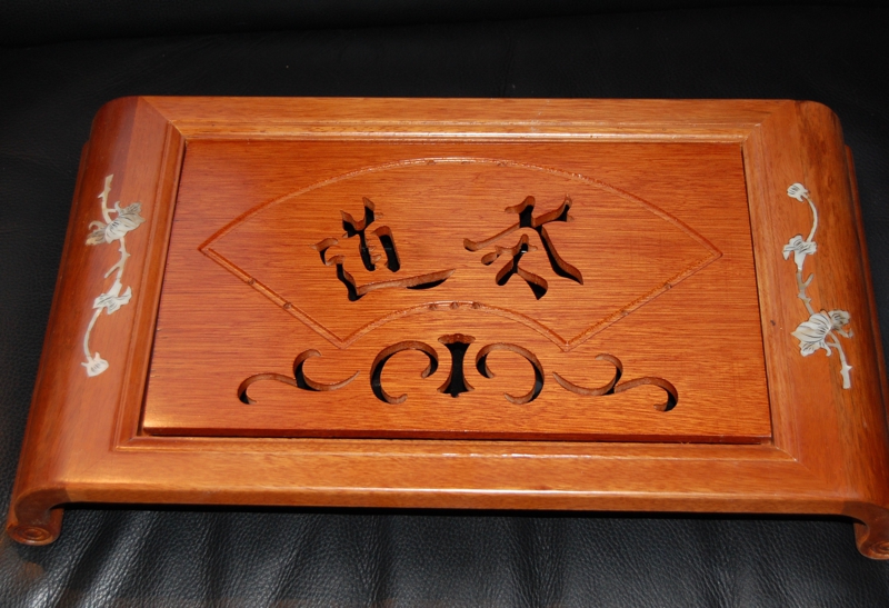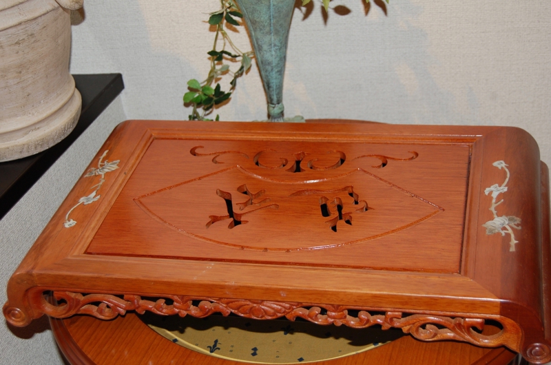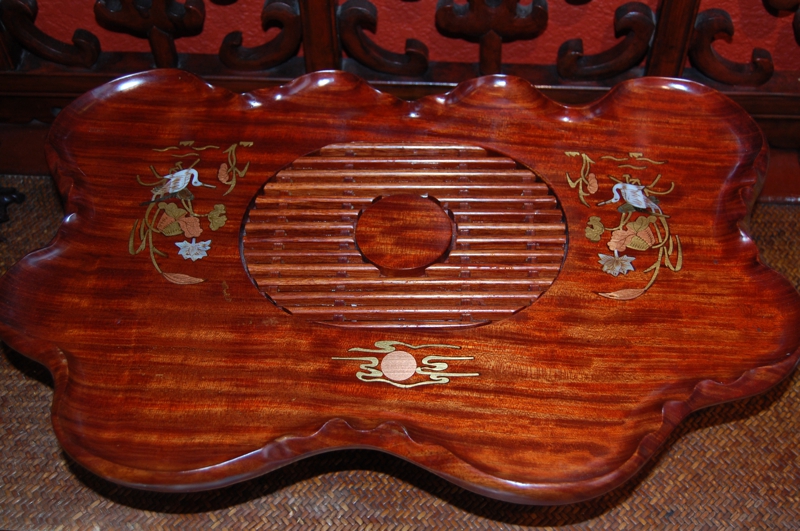 材質は高価な鶏翅木を使用。マホガニーの一種で中国では高級古典家具などに使用されています。